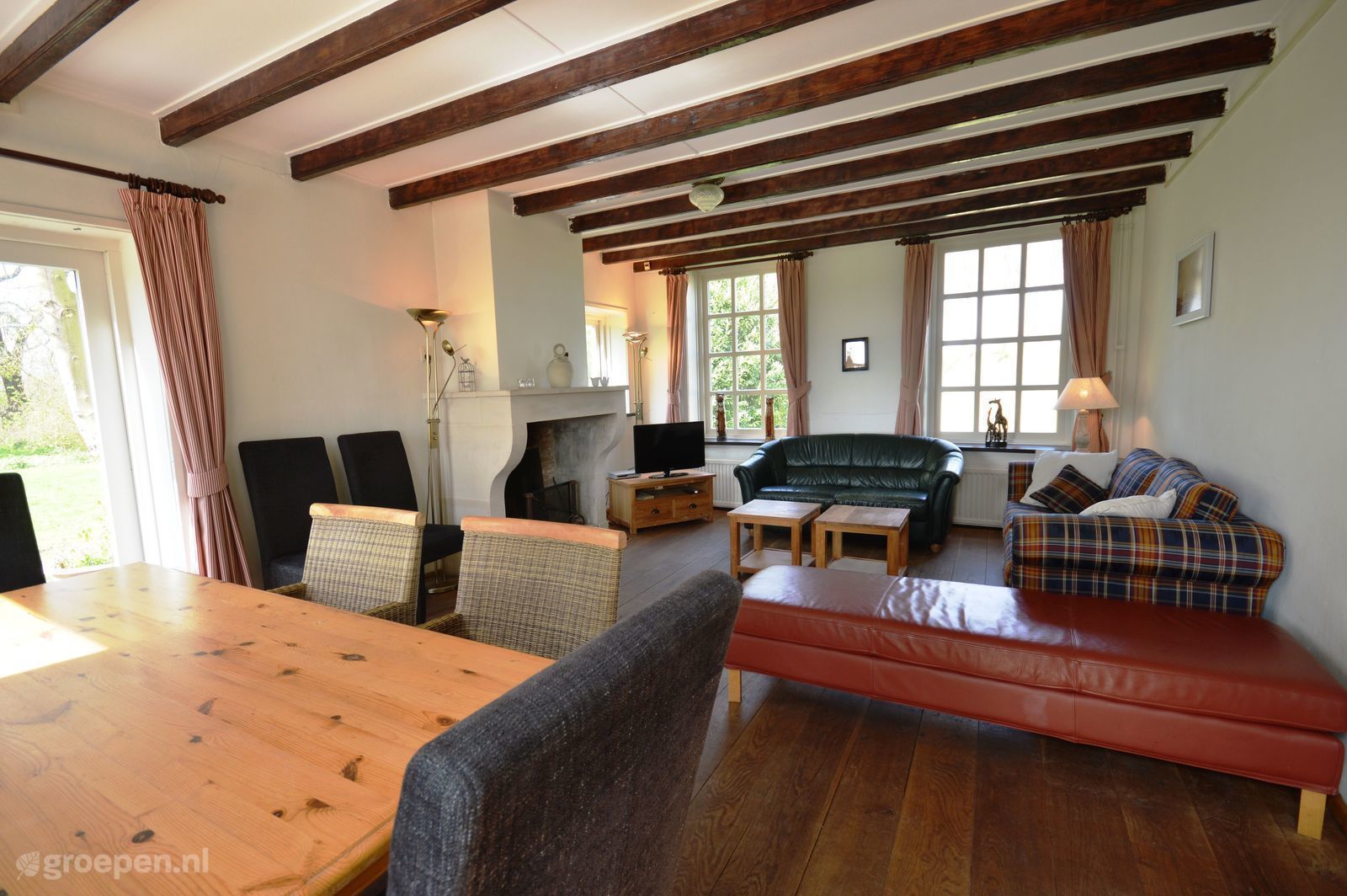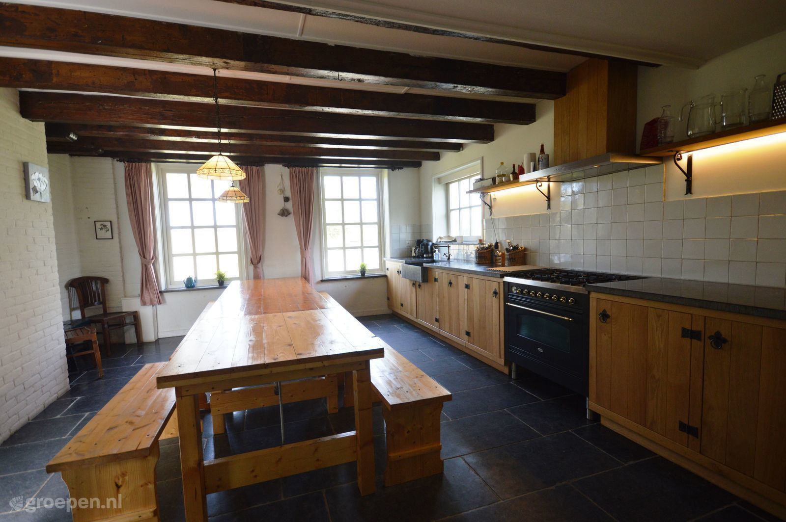 Aan de rand van het natuurgebied De Poel ligt dit fraaie buitenhuis. De groepsaccommodatie biedt plaats aan groepen tot 18 personen. Je bevindt je in het zogenaamde heggengebied met zijn hollebollige weilanden en de bloemendijken. In het voorjaar staan de fruitbomen in bloei, het is dan één grote bloemenpracht, en in het najaar kleuren de bomen geel en rood van het fruit. Je hebt hier volledige privacy met je groep! Rondom het huis zijn diverse terrassen. De tuin is een hectare groot en gedeeltelijk ingericht als boomgaard. Het heeft veel speelruimte en ligt tussen twee welen.