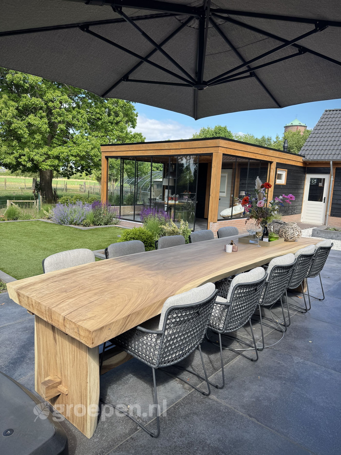 This country house is located between Venlo and Roermond in the immediate vicinity of the Maas and its floodplains. The group accommodation is located on a plot of more than 26,000 m2. Combine your stay with a cooking workshop, be culinarily surprised by a private chef or enjoy a cozy wine tasting in the spacious vaulted wine cellar. The garden is park-like and equipped with a fountain and large heated outdoorswimming pool. In addition, there is a sauna and a jacuzzi. In short, the ideal place to make it a fun and relaxed weekend with friends.