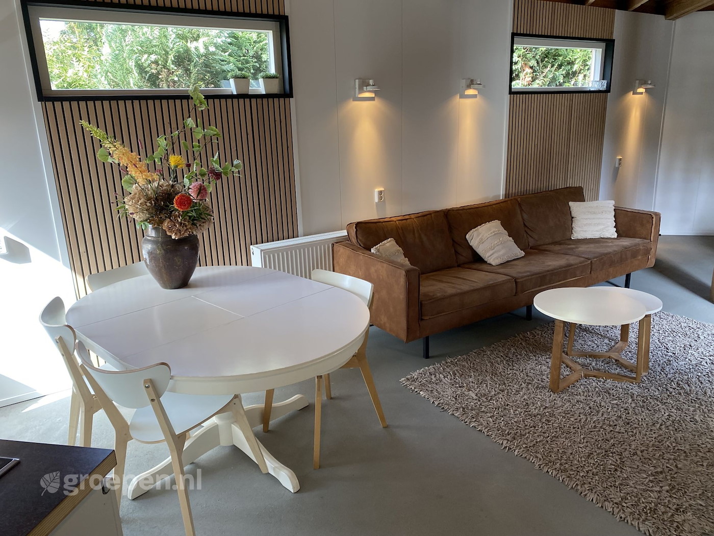 This group accommodation for groups of up to 10 people consists of two adjacent accommodations: a cozy studio suitable for 3 people and a holiday home for 7 people. You can wake up every day with a breathtaking view of the surrounding cows and the church tower of Hasselt. It’s the perfect location for a weekend with friends. You will be provided with everything you need here and in the evening you can completely relax by a crackling campfire. Whether you want to sail in the Weerribben, grab a terrace in bustling Zwolle or relax in the hot tub (available for rent), this group accommodation is the base you need to make your weekend with friends a success.