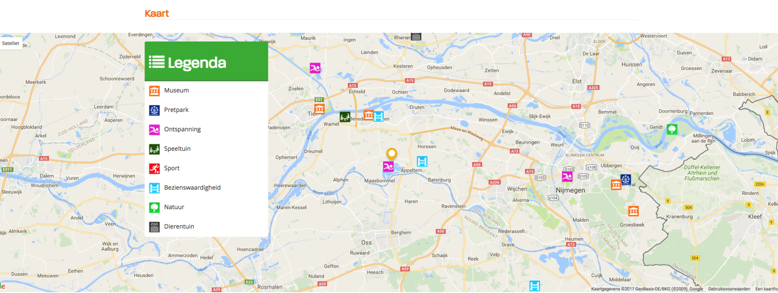 Bij iedere groepsaccommodatie staat een Googlekaartje met daarbij informatie over toeristische trekpleisters in de omgeving. Wij hebben zelf deze database gevuld met zo’n 200 tips. Lang niet compleet! Wie weet er nou beter welke tips leuk zijn voor uw (toekomstige) gasten dan u als eigenaar.